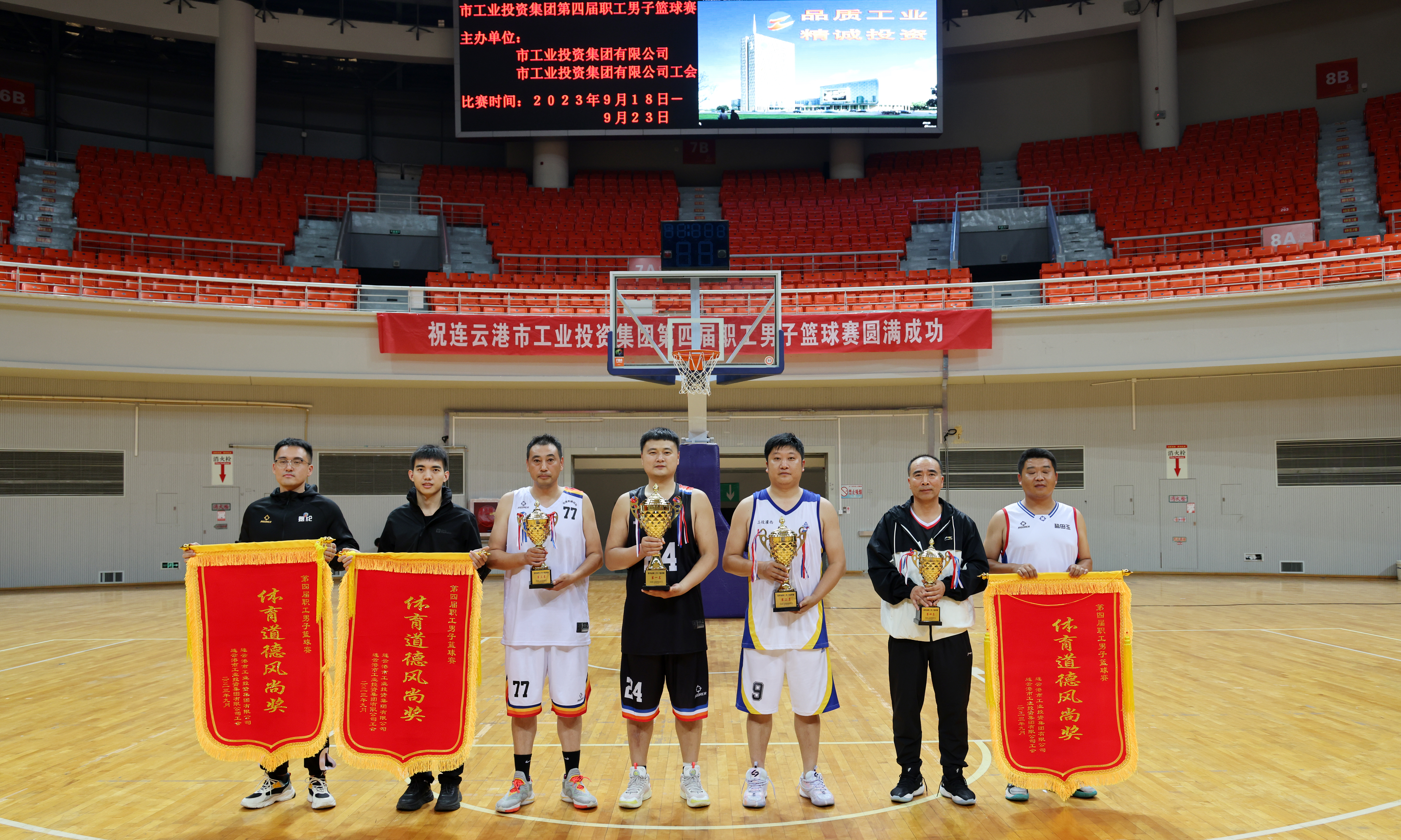 在市體育中心籃球館進(jìn)行的前四名比賽中,徐圩投資公司代表隊(duì)、灌西投資公司代表隊(duì)、利海氯堿公司聯(lián)隊(duì)和臺(tái)北投資公司代表隊(duì)經(jīng)過一天的爭(zhēng)奪,分獲前四名。供電公司、青口投資公司、氨綸公司三支代表隊(duì)獲體育道德風(fēng)尚獎(jiǎng)。集團(tuán)公司領(lǐng)導(dǎo)戴鴻鳴、劉承志出席閉幕式,并為獲獎(jiǎng)代表隊(duì)頒獎(jiǎng)。