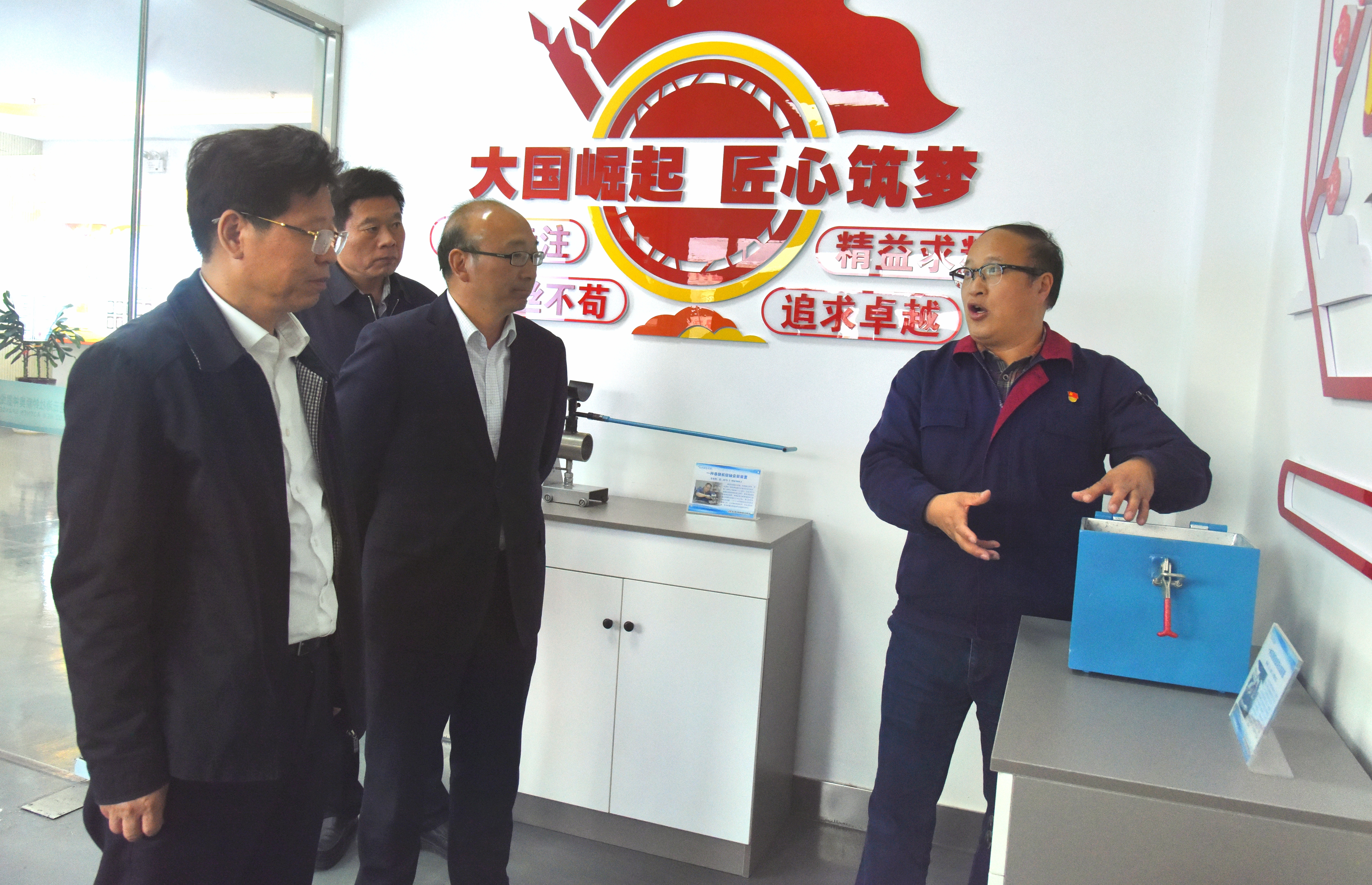 4月13日,中國能源化學地質工會主席、分黨組書記蔡毅德一行到氨綸公司指導產改、研發等工作。市總工會黨組書記、工會副主席丁維杰,集團公司黨委書記、董事長丁銳,黨委副書記、工會主席戴鴻鳴陪同。