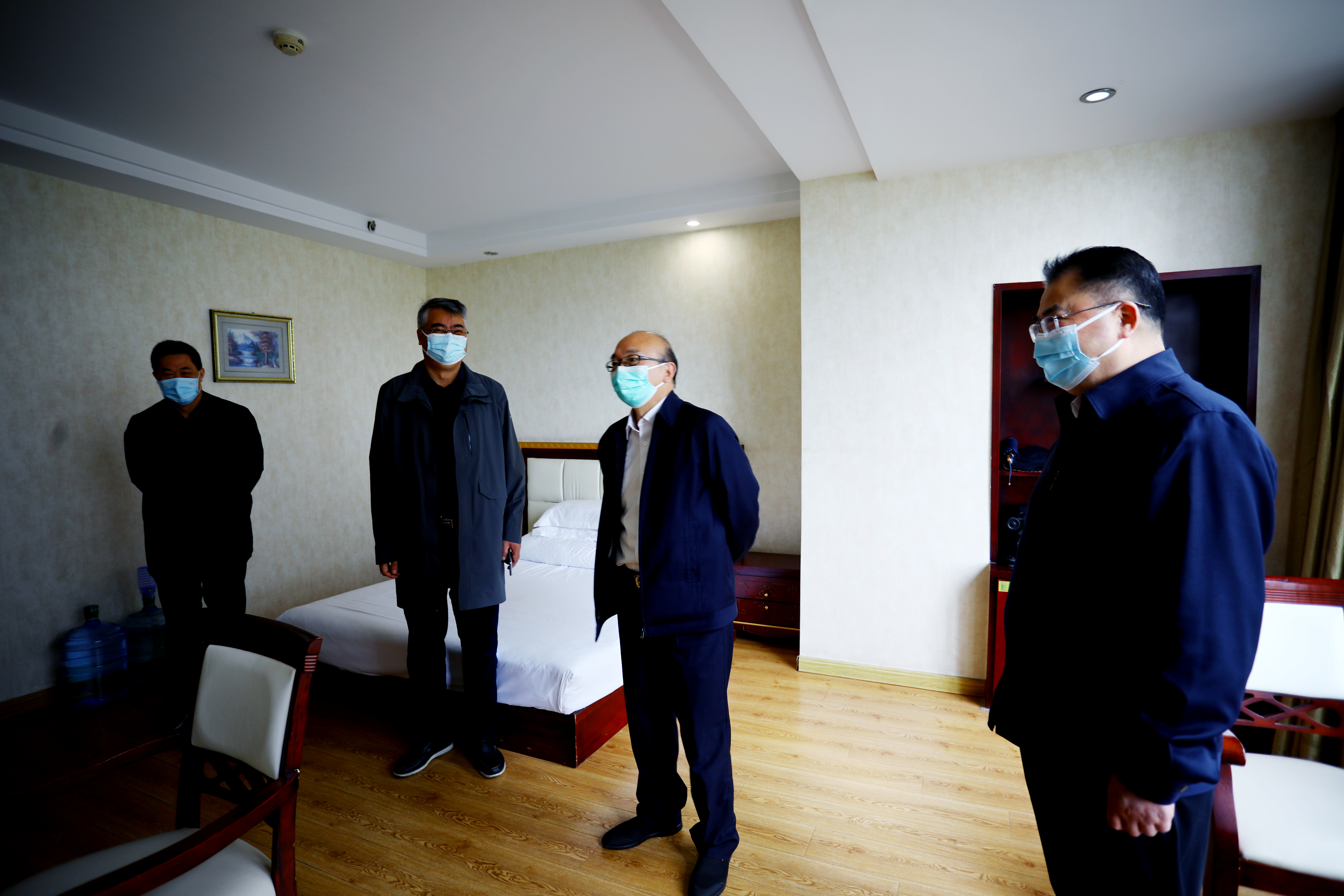 在臺北投資公司機關臨時辦公點,丁銳詳細檢查了員工臨時宿舍、值班值守和防疫管控情況,在聽取了臺北投資公司疫情防控工作情況匯報后強調,要落實好“疫情要防住、經濟要穩住、發展要安全”的要求,做到既防住疫情,又盡可能減少對生產經營和民生服務的影響。要保護自身安全,督促員工抓好自身防護,做好定時消殺,關注用電用火安全,保障值守必備物資。要持續深入宣傳疫情防控政策措施,嚴格遵守各項疫情防控規定,提高防疫意識和自我防護能力,構筑起群防群控、聯防聯控的堅固防線。