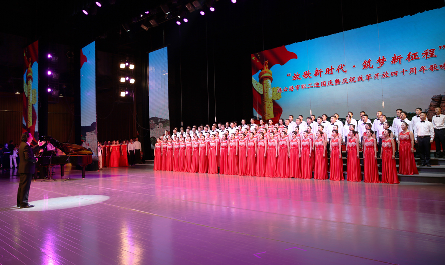 9月28日下午,由市委宣傳部、市總工會、市文廣新局聯(lián)合舉辦的“放歌新時代·筑夢新征程”——連云港市職工迎國慶暨慶祝改革開放四十周年歌詠比賽在市藝術(shù)中心隆重舉行。來自各縣區(qū)、各條戰(zhàn)線的16支代表隊參加比賽,經(jīng)過3個多小時緊張角逐,集團公司組織的100人合唱隊以《走向復(fù)興》、《天路》兩首激昂向上的歌曲脫穎而出,獲得一等獎。