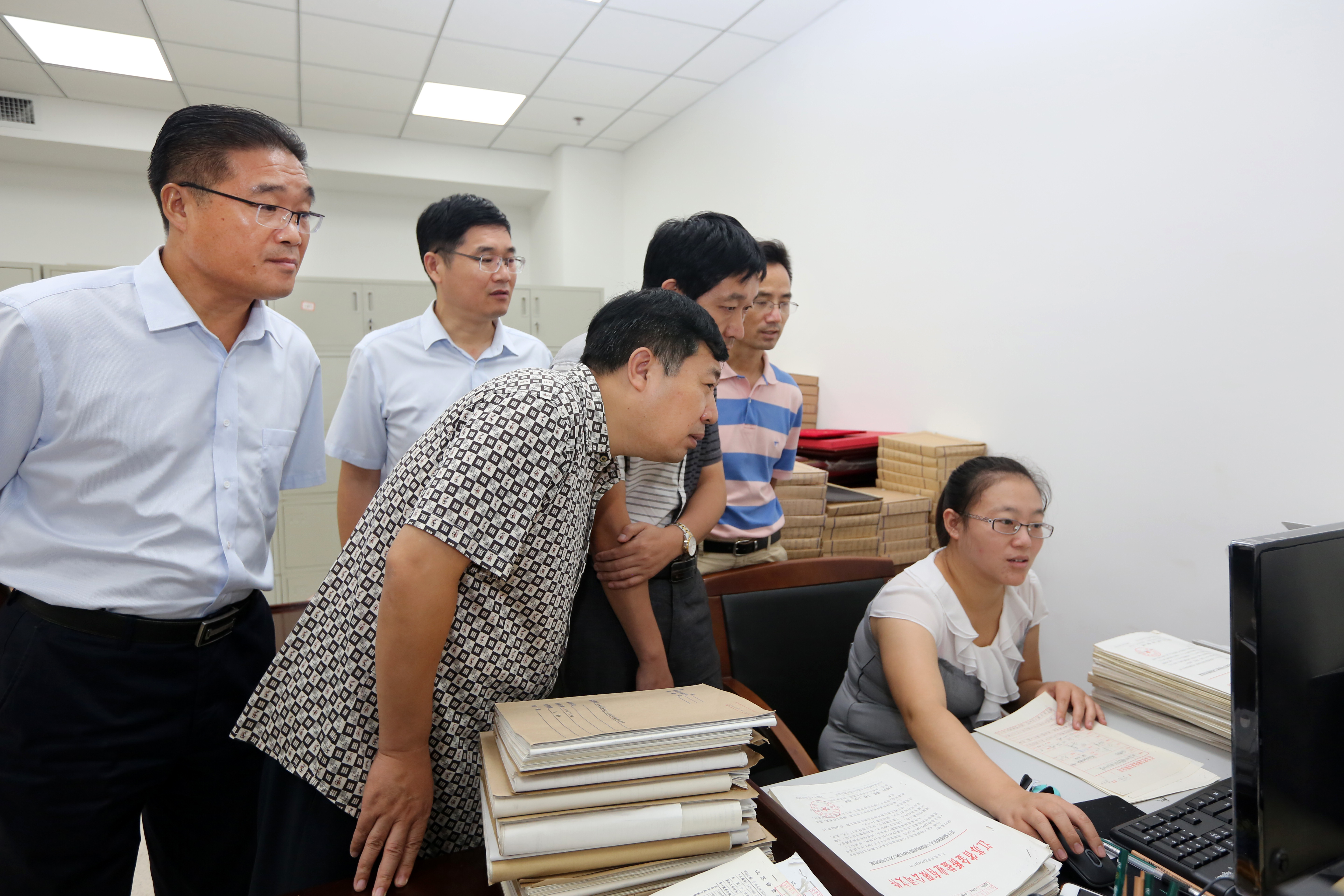 8月8日下午,市檔案局副局長韋林海一行四人來我公司檢查指導檔案工作,集團公司工會主席劉承志陪同。