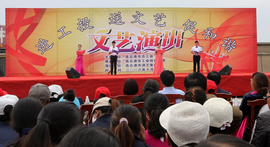 1011日下午,由連云港市總工會(huì)主辦、集團(tuán)公司承辦、市演藝集團(tuán)演出的“進(jìn)工投、送文藝、促和諧”文藝演出在灌西投資公司精彩上演,市總工會(huì)副主席陳健、集團(tuán)公司工會(huì)主席戴鴻鳴等領(lǐng)導(dǎo),以及1000余名觀眾觀看了演出。