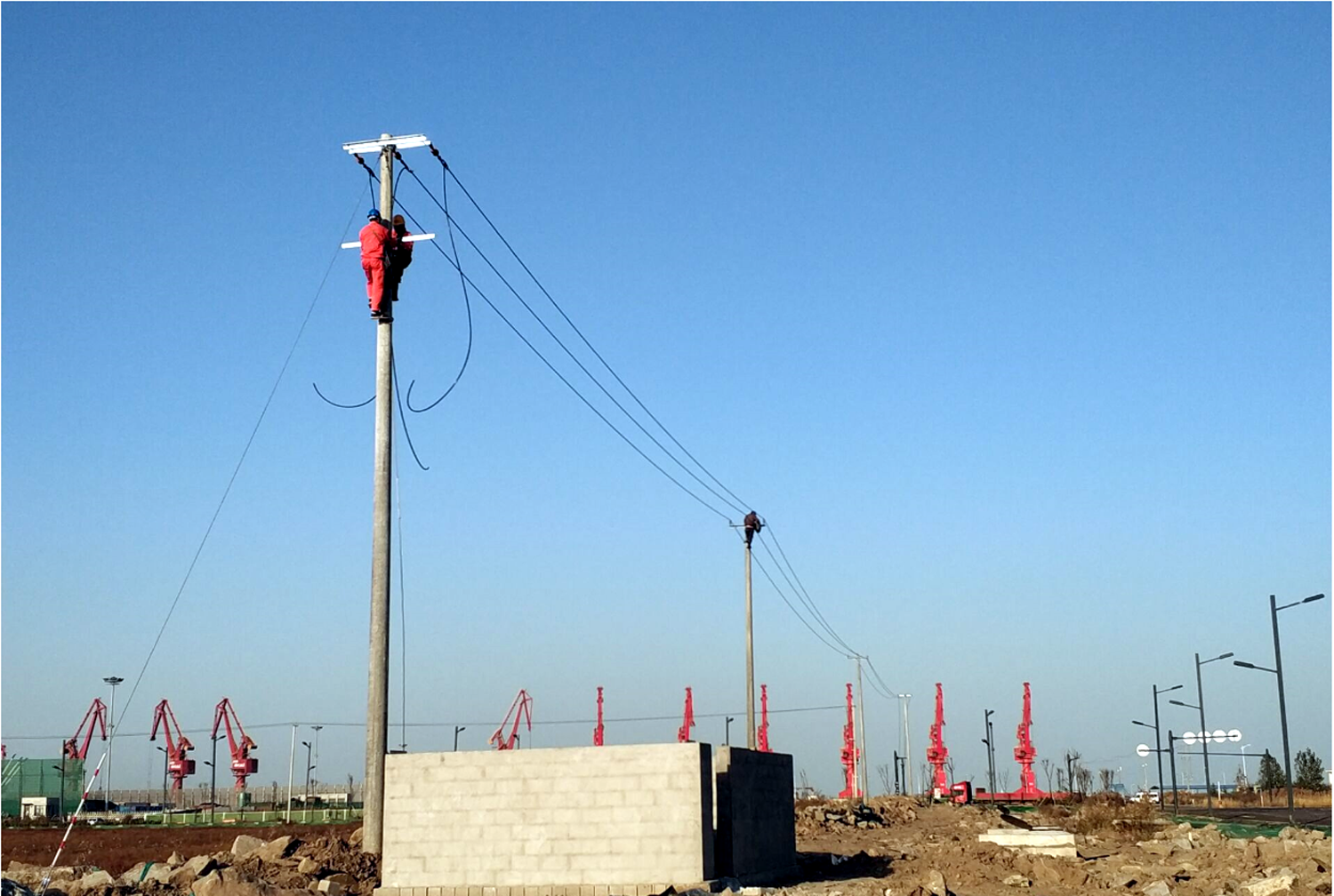 “他們這么年輕,沒有經(jīng)驗(yàn),能爬這么高的電桿么?”臺(tái)南供電所負(fù)責(zé)人趙勇對(duì)他們爬桿作業(yè)倍感擔(dān)心。在15米高的電桿前,青年突擊隊(duì)員們二話不說,穿上腳扣,戴上保護(hù)手套,系好安全帶,動(dòng)作干脆利落,三下五除二就爬到了桿頂,在隊(duì)長孫迎照的指揮下開始了施工作業(yè),在規(guī)定時(shí)間內(nèi)圓滿完成了工作任務(wù),徹底掃除了趙所長之前所有的擔(dān)心。“我們能行,我們可以!”逐漸成為青年突擊隊(duì)響亮的口號(hào)。在各個(gè)施工現(xiàn)場(chǎng),總能看見這支青年突擊隊(duì)隊(duì)員們穿梭于工地的各個(gè)角落,在各種角鐵鋼架上進(jìn)行復(fù)雜的操作,在高高的電桿上檢修故障。總能在施工現(xiàn)場(chǎng)的每一個(gè)角落看見青年突擊隊(duì)員進(jìn)行現(xiàn)場(chǎng)施工、組織協(xié)調(diào)、質(zhì)量控制、質(zhì)量驗(yàn)收等各項(xiàng)工作時(shí)的身影。他們兢兢業(yè)業(yè)、埋頭苦干,確保了項(xiàng)目計(jì)劃的順利實(shí)施,保障了項(xiàng)目工期的順利推進(jìn)。