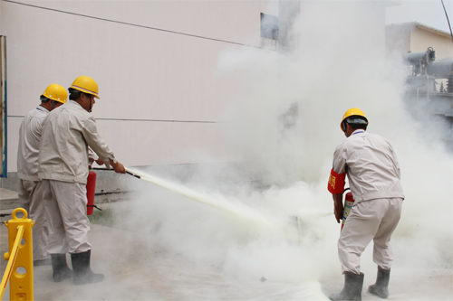 演練假設(shè)灌西變電所35千伏在用1號主變在運(yùn)行過程中突然起火,火勢危及變電所的安全運(yùn)行,情況十分危急。火災(zāi)發(fā)生后,變電所值班人員立即向所領(lǐng)導(dǎo)報告,按指示啟動滅火應(yīng)急預(yù)案。滅火過程中,共動用4支滅火器從不同角度對火勢進(jìn)行壓制。經(jīng)過半個小時的協(xié)同作戰(zhàn),值班人員準(zhǔn)確、快捷、安全地完成了滅火演習(xí)過程,演練取得圓滿成功。