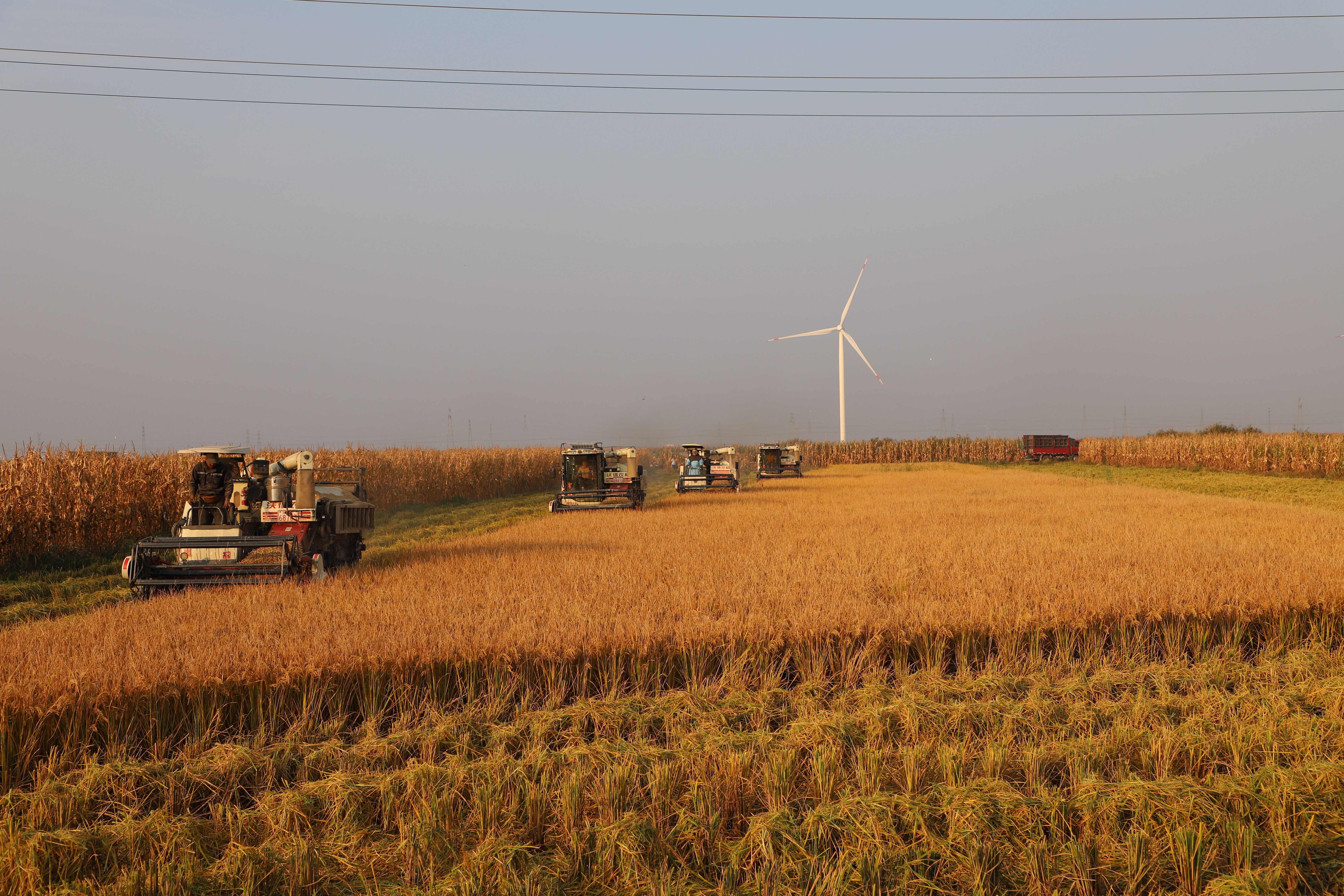 秋高氣爽,稻谷飄香。當下,正是水稻收割的大忙季,田間稻浪翻滾,馬達轟鳴,一臺臺收割機在稻田里來回穿梭,割稻、脫穗、粉碎稻桿一氣呵成,一壟壟沉甸甸的稻谷很快便收獲歸倉,田間一派繁忙、豐收的景象。