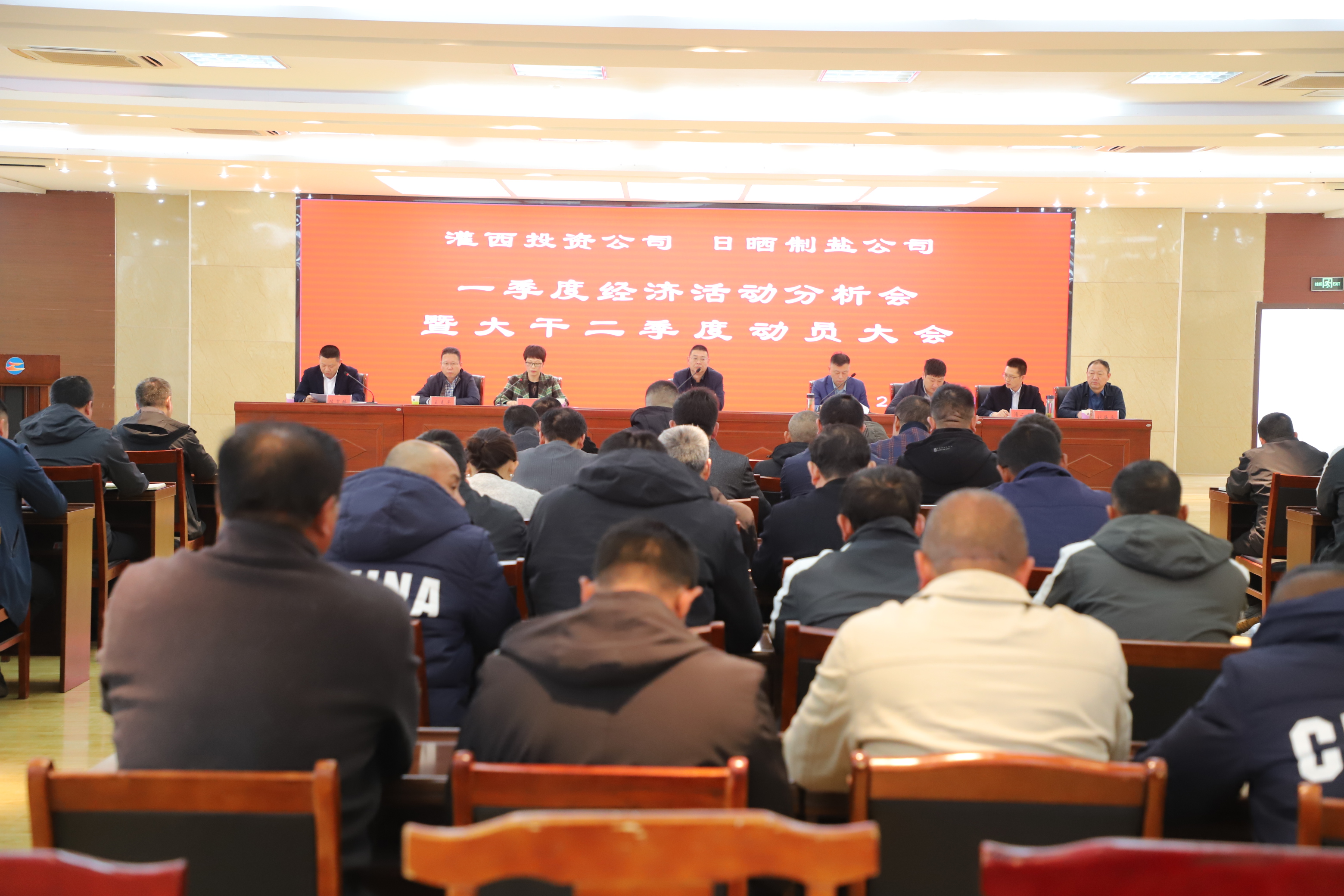 4月19日下午,灌西投資公司召開一季度經濟活動分析會暨大干二季度動員大會,公司領導班子成員,各單位副職級以上人員,機關全體管理人員,部分班組長及受表彰人員參加會議。