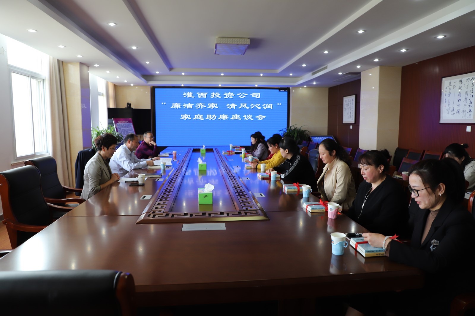為充分發揮黨員干部家屬“廉內助”的作用,做好“八小時”外的廉政教育,倡導廣大黨員干部家屬把好家庭廉政關。10月13日上午,灌西投資公司紀委召開以“廉潔齊家 清風沁潤”為主題的家庭助廉活動,公司領導干部家屬代表一起拉家常、話正氣、樹家風,共同守好家庭廉潔防線。