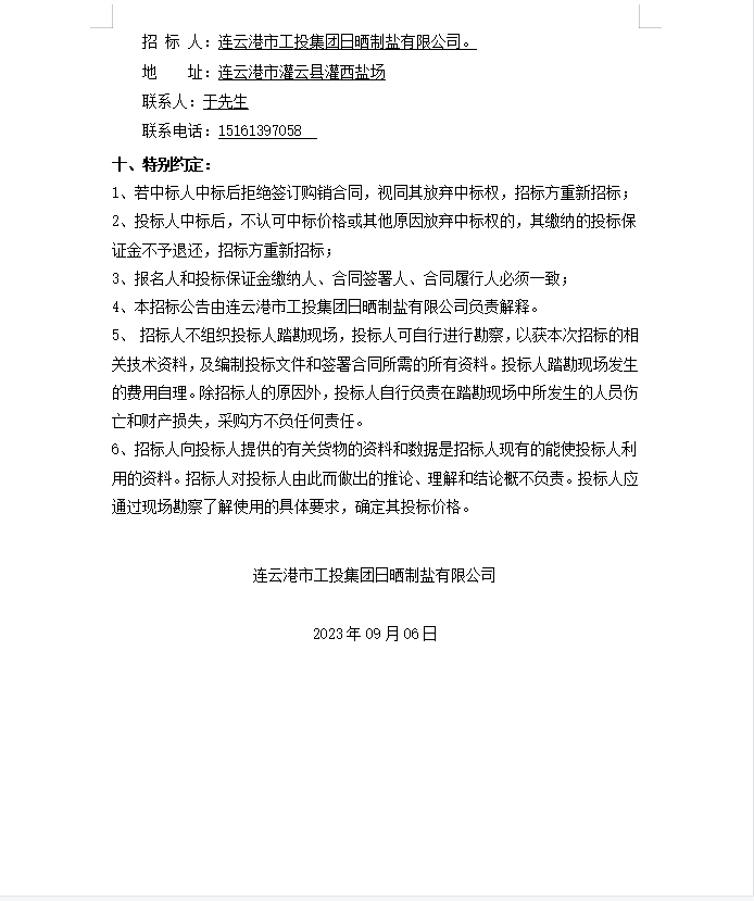 連云港市工投集團(tuán)日曬制鹽有限公司機(jī)油、液壓油等物資公開招標(biāo)公告