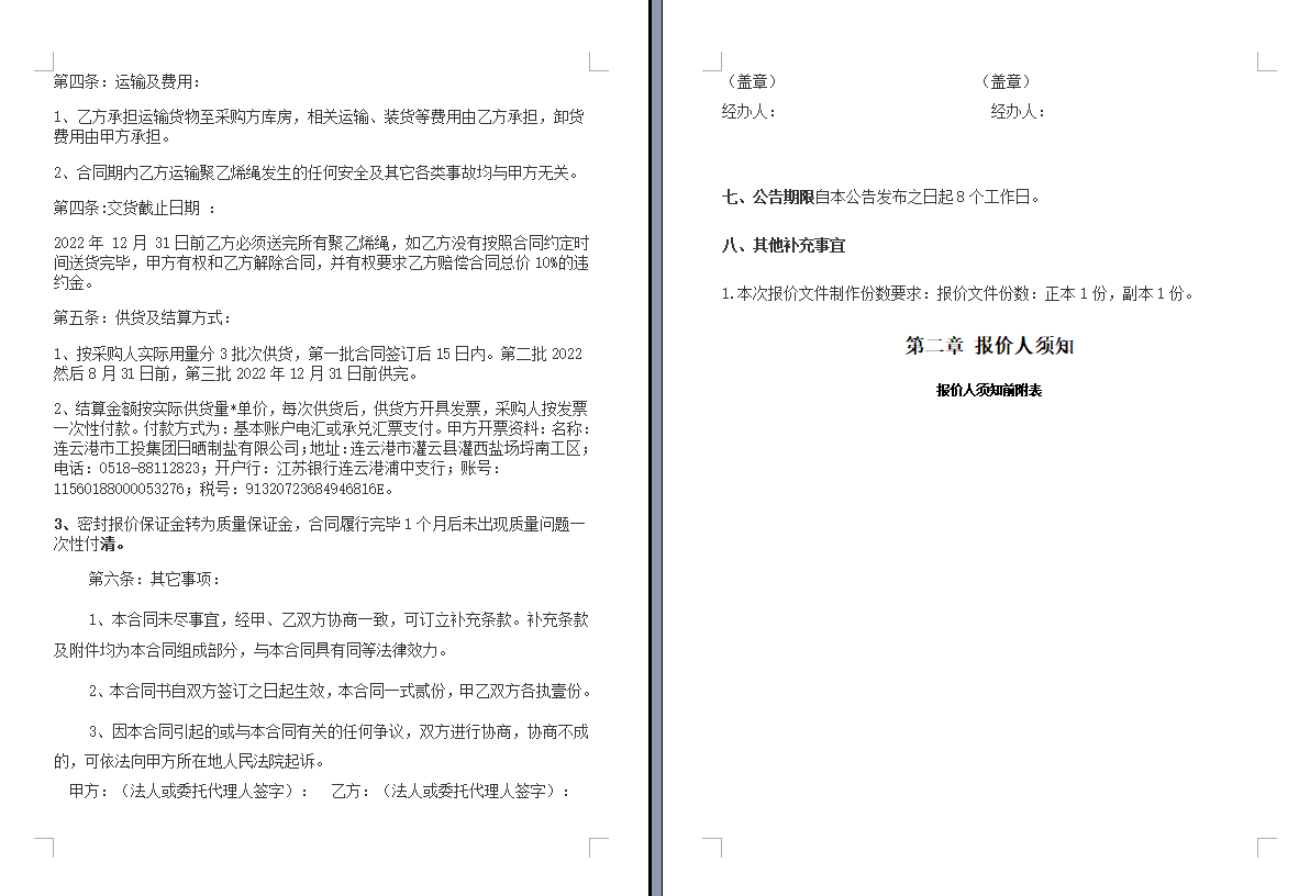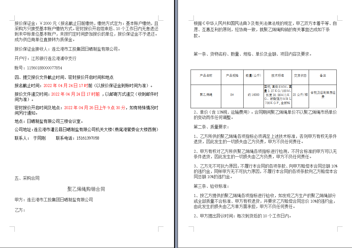 連云港市工投集團(tuán)日曬制鹽有限公司聚乙烯繩采購項(xiàng)目
