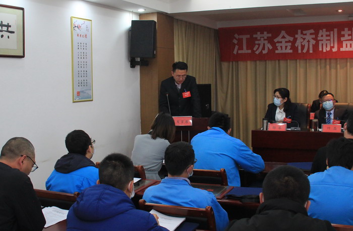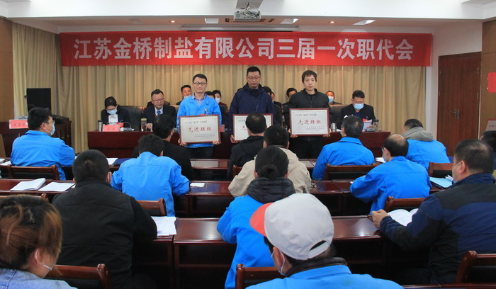 大會簽訂了《2021年度集體合同》、《2021年度經營認標責任書》,與會代表認真審議通過了總經理工作報告,通過了大會決議、有關方案和意見。加工鹽車間、包裝鹽車間、銷售部依次作了表態發言。大會表彰了第九屆“金橋杯”勞動競賽、2020年“大干四季度”勞動競賽的先進集體和先進個人以及2020年度“金橋工匠”。(金宣)