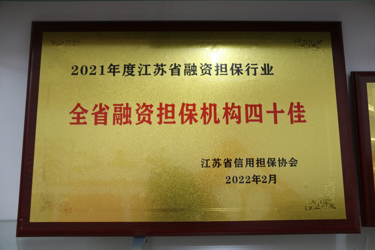 被省擔保協(xié)會評為“江蘇省2021年度融資性擔保機構四十佳”。