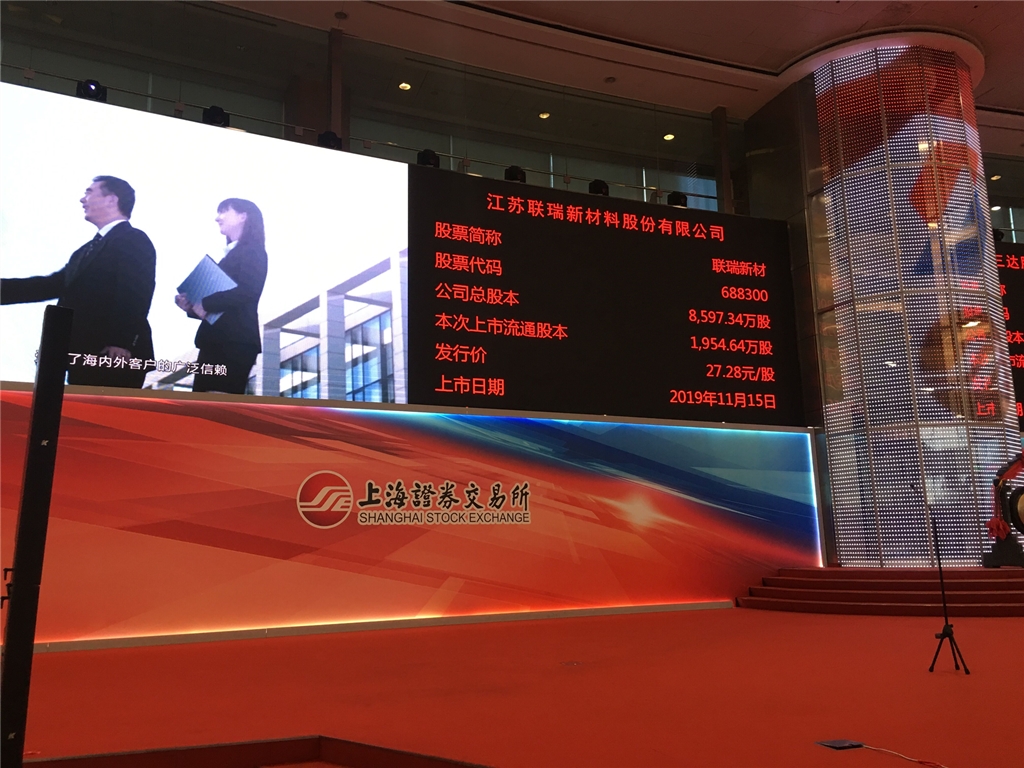 | 11月15日上午9時30分,工投集團產(chǎn)業(yè)基金投資企業(yè)——江蘇聯(lián)瑞新材料股份有限公司(以下簡稱“聯(lián)瑞新材料”)首次公開發(fā)行A股上市儀式于上海證券交易所舉行。集團公司黨委書記、董事長楊龍,資產(chǎn)管理公司有關(guān)人員受邀出席儀式。
