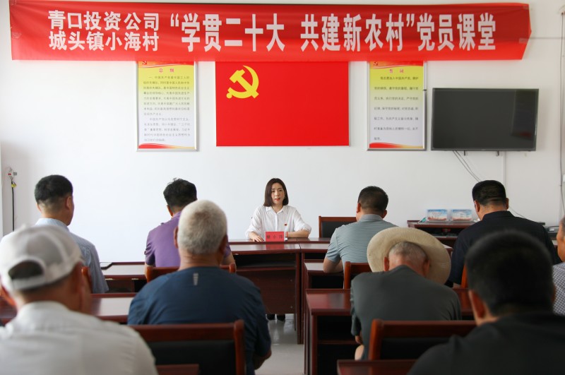 為推動黨的二十大精神在鄉(xiāng)村落地生根,6月28日上午,青口投資公司、城頭鎮(zhèn)小海村聯(lián)合開展“學(xué)貫二十大 共建新農(nóng)村”黨員課堂,由公司機關(guān)優(yōu)秀黨務(wù)干部組成的二十大精神宣講隊,走進結(jié)對共建的贛榆區(qū)城頭鎮(zhèn)小海村開展集中式、通俗化宣講。公司黨委副書記、工會主席梁永,城頭鎮(zhèn)副鎮(zhèn)長王延光,城頭鎮(zhèn)小海村支部書記徐坤參加活動。