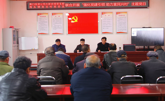 ? ?為貫徹落實市委、市政府關于推動“黨建引領、富民興村”部署,11月24日下午,青口公司黨委緊緊圍繞活動主題,結合“萬企聯萬村 共走振興路”行動,積極組織大新農場黨支部與海頭鎮龍北村黨總支聯合開展“強化黨建引領 助力富民興村”主題黨日活動。