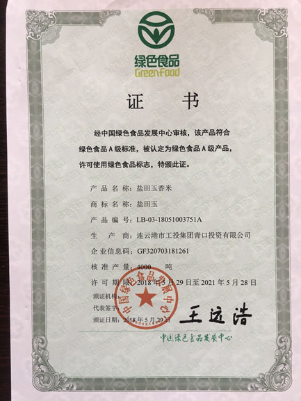 經過 2年時間的奔波和整理材料,“鹽田玉”米于2018年5月通過認證,獲得綠色食品標志使用權。