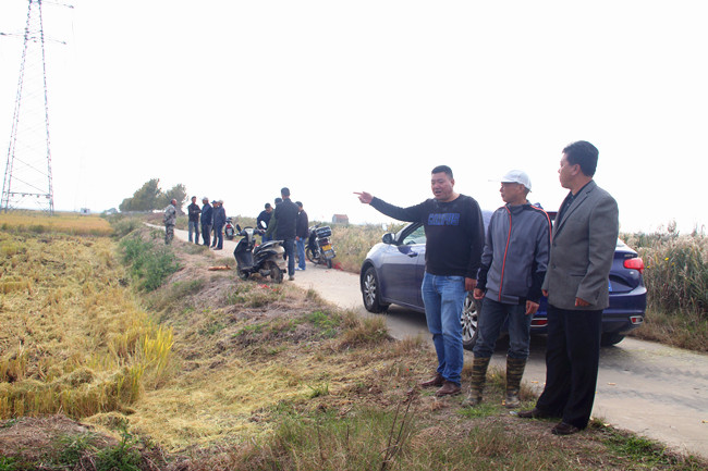 10月25日,天氣晴好。四臺收割機(jī)伴隨著喜慶的爆竹聲陸續(xù)開進(jìn)稻田,拉開了大新農(nóng)場萬畝稻田開鐮序幕。黨委委員、副總經(jīng)理周緒祥在現(xiàn)場查看指揮。