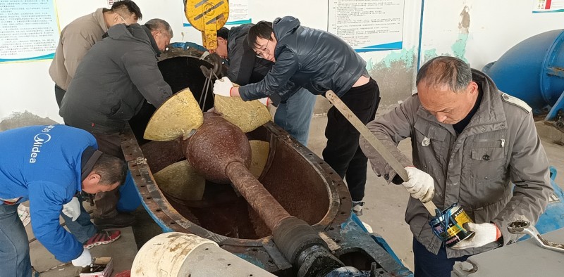 隨著天氣漸冷,為維護(hù)揚(yáng)水站機(jī)械設(shè)備的精度和性能,延長(zhǎng)設(shè)備使用壽命,近日,生產(chǎn)生活服務(wù)中心揚(yáng)水站班組加班加點(diǎn)對(duì)機(jī)房?jī)?nèi)所有水泵進(jìn)行大修保養(yǎng)。