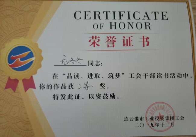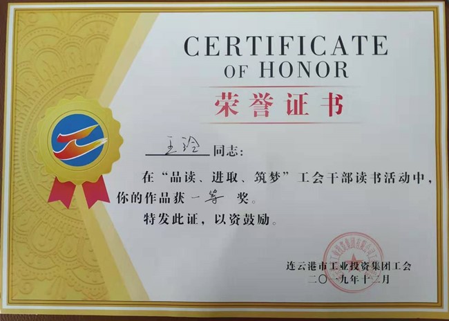 ??? 今年2月起,集團公司工會開展了以“品讀、進取、筑夢”為主題的工會干部讀書活動,青口公司工會干部積極響應活動要求,認真撰寫讀書心得體會文章,共上報九篇體會文章參加評選,經集團工會審定評選,我公司王玲《且思且說且努力》獲得一等獎、尤冬冬《如何掌控這個變化的世界》獲得二等獎,另有多人獲得三等獎及優秀獎。 (青工)