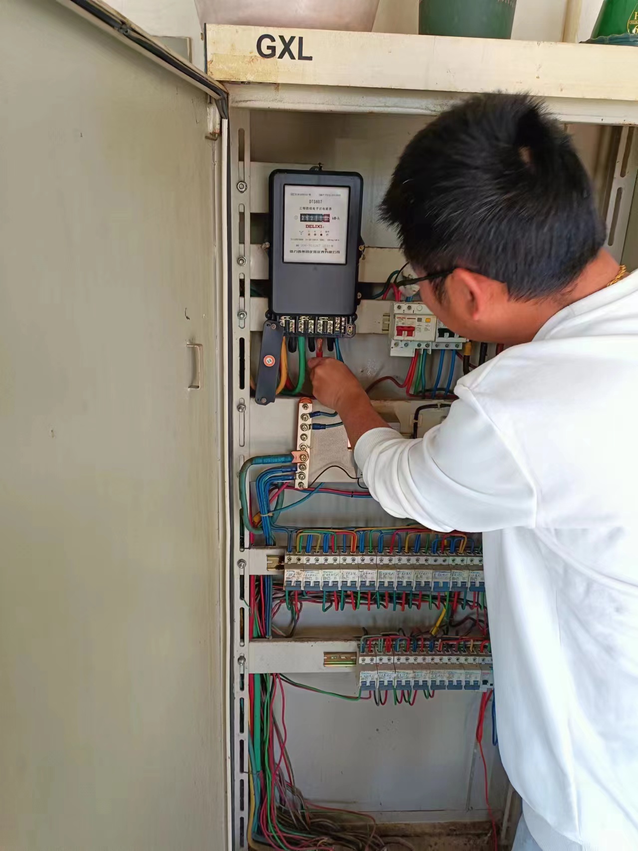 ? ? ??為確保節日期間園區安全穩定運行和電力可靠保障,美多利公司提前部署,落實安全生產、應急搶修等重點措施,做好園區各項安全準備工作,認真梳理線路設備的薄弱環節,加強對重要設備的巡視檢查。5月1日,班組成員金同喜、何愷對值班室配電柜突發故障予以排查檢修,及時消除安全隱患。