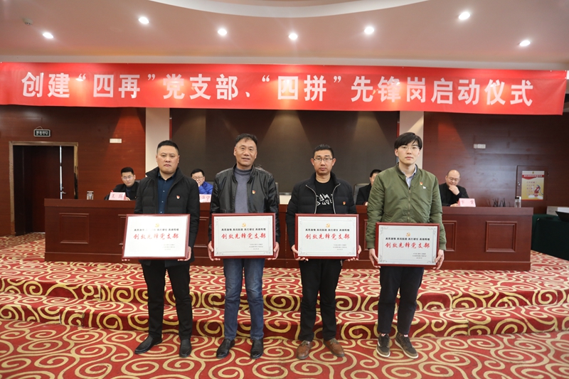 啟動儀式中還進行了“四再”黨支部、“四拼”先鋒崗授牌,支部書記、黨員代表進行了表態發言。?
