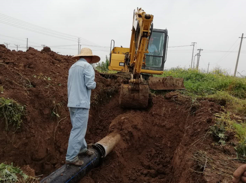鏡頭三:東輸灌西的鈣液管道因使用年久老化,在新東方大道路下的穿越自然損壞,為了不影響鈣液銷售,搶修工作正“馬不停蹄”!