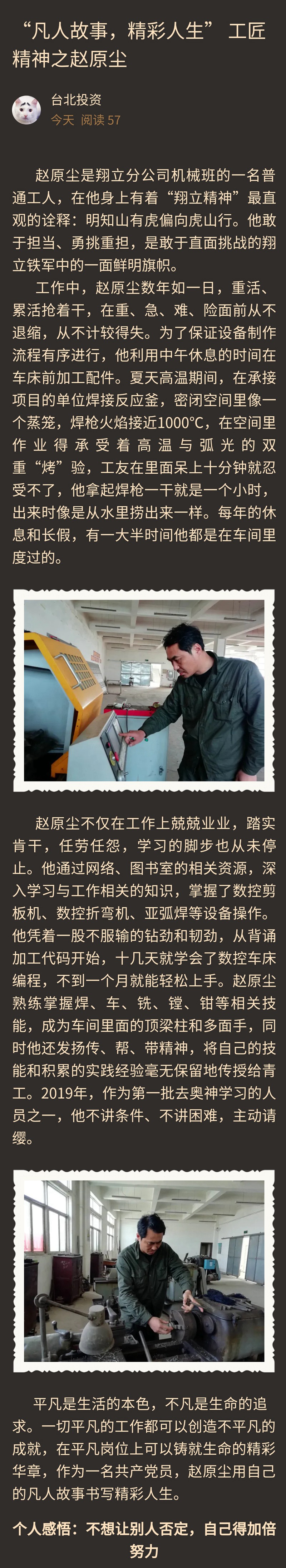 【匠心筑夢 實干興企】“凡人故事,精彩人生” 工匠精神之趙原塵