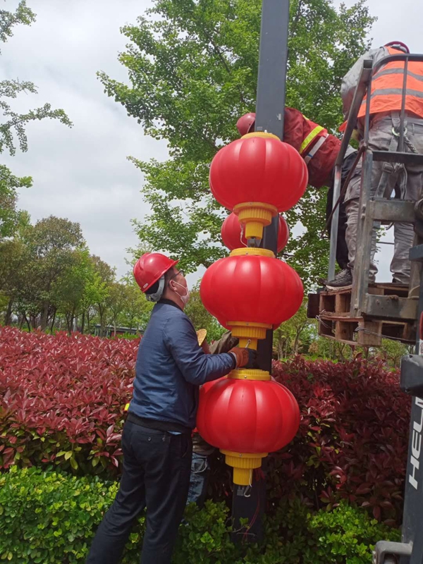 施工現(xiàn)場(chǎng),大家配合默契利用小型叉車進(jìn)行輔助拆除作業(yè),五分鐘不用一個(gè)燈籠就拆除完成。這邊完成拆除部分,那邊負(fù)責(zé)還原以及運(yùn)送回收。由于燈籠的不可收攏性,同時(shí)為避免造成二次污染,對(duì)于拆下來(lái)的燈籠及時(shí)進(jìn)行運(yùn)送和回收保存,確保第二年要安裝的時(shí)候重復(fù)利用。