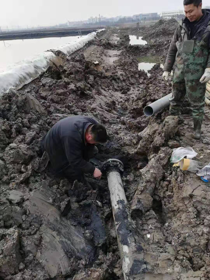 該項工程是為了配合開發區新建道路正常施工,和保證大浦工區原鹽生產不受影響,由翔立分公司承接的猴嘴十二路下穿DN315和DN160兩根PE管道穿越工程。因規劃的穿越點處于水塘邊,現場施工環境較為困難。翔立公司參與施工人員想方設法克服困難,穿越施工前采取發電機水泵抽排水、填土夯實頂管機作業場地、克服淤泥深等障礙,保證施工進度的正常進行。