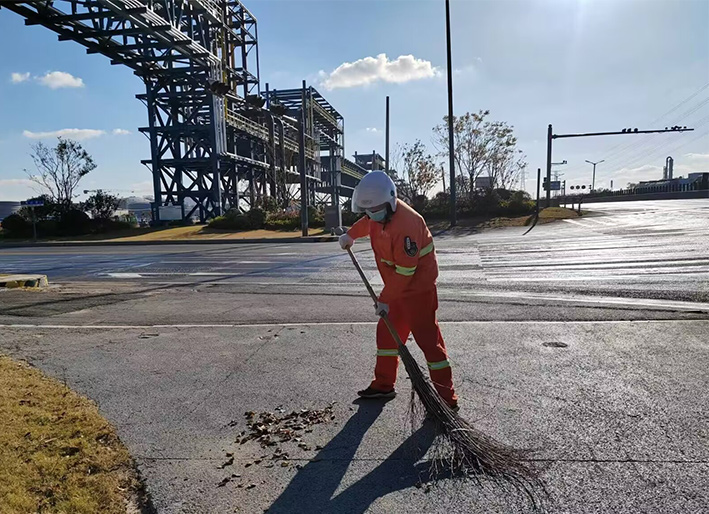 入冬以來,該分公司園區(qū)兩個(gè)班組35名保潔衛(wèi)士無懼徐圩冬季寒風(fēng)浸透身體,身穿橙色工作服,每天持續(xù)工作達(dá)6個(gè)多小時(shí),不間斷對(duì)園區(qū)近20多條道路進(jìn)行巡查,轉(zhuǎn)運(yùn)打包各類垃圾高達(dá)400余包,清掃輔道岔路口石子,泥土50多處,用辛勤勞作汗水彰顯徐圩悅升人敬業(yè)勞動(dòng)風(fēng)采。