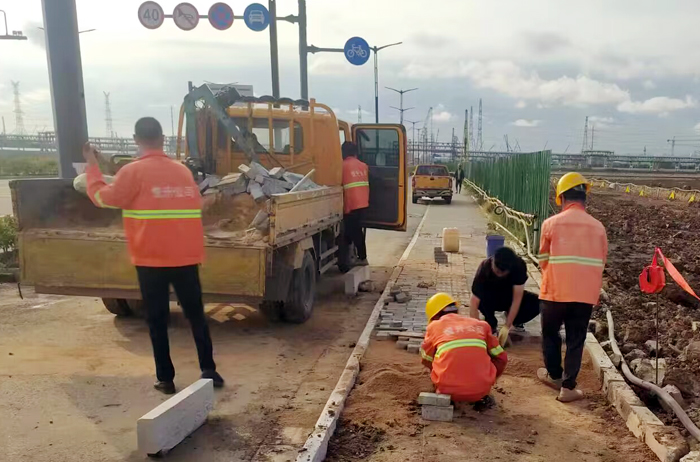 走進(jìn)新區(qū)石化十路一處施工現(xiàn)場(chǎng),“市政尖兵們”正井然有序地對(duì)因施工車輛碾壓造成人行步道地磚破損處進(jìn)行修復(fù)。人工拆除原受損人行道地磚,對(duì)缺失路牙石進(jìn)行補(bǔ)缺并壓實(shí)整平基礎(chǔ)、定位放線、更換面包磚和盲道磚,經(jīng)過(guò)2個(gè)多小時(shí)緊張施工,原坑坑洼洼的路面,取而代之是敞亮平整。多日來(lái),默默無(wú)聞的市政“尖兵”們用勤勞的雙手加速施工進(jìn)程,用實(shí)干詮釋徐圩悅升市政人的新風(fēng)采。目前,已完成徐圩大道、云河路等10條主次干道兩側(cè)人行道集中巡檢修補(bǔ)工作,共整治32處,更換面包磚約96平方米、路緣石33米、盲道地磚11平方米。